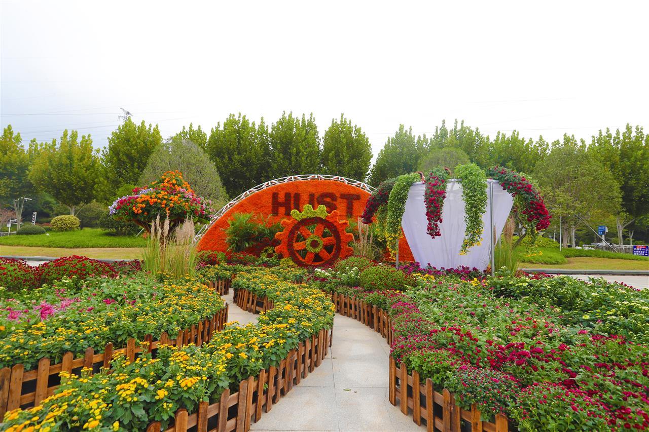 本届菊展不仅是城管部门联合武汉站综管办精心打造的园林艺术,更是全民共创的文化盛事。华中科技大学以一抹“科技橘”与“青春绿”打造出极具现代感的展区,绿瀑垂落、白纱轻掩,仿佛诉说着大学之城的创新与活力。此外,洪山街道的“丰收粮仓”、卓刀泉街道的多彩乒乓菊、邮科院的通信元素小景等,也都各具特色,共同构筑起菊展的多元魅力。