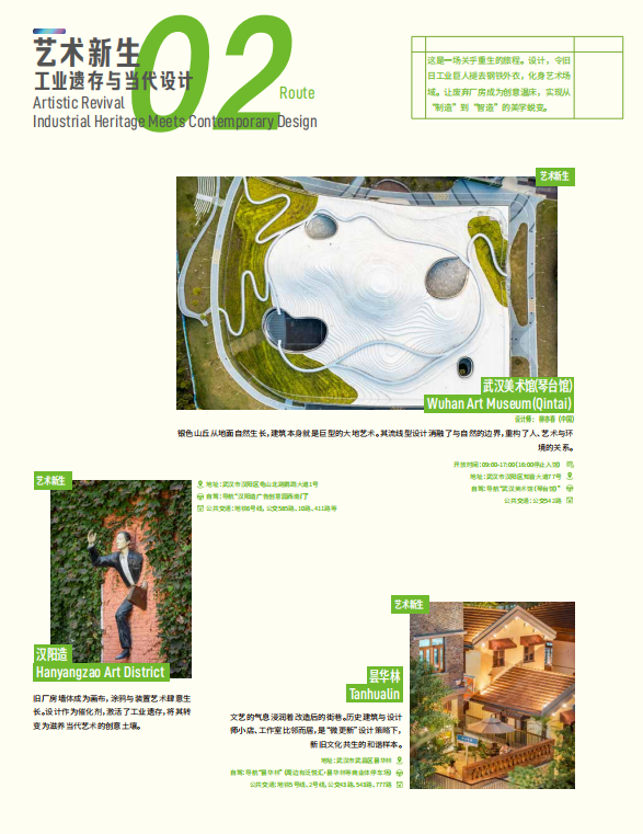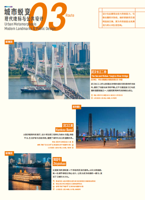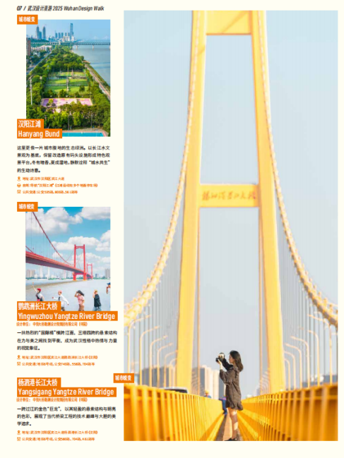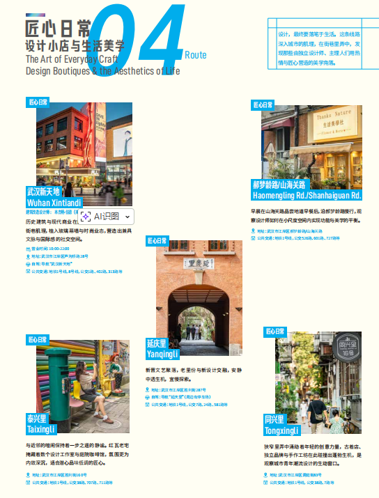 本次活动同步发布“设计漫游”Designwalk四大主题路线,将整座武汉变成了“流动的设计展厅”。现场许多市民踊跃领取漫游地图,纷纷拍照记录路线详情。四大路线包括:“百年风貌”路线:串联江汉关博物馆、中山大道、黎黄陂路等历史建筑;“艺术新生”路线:涵盖琴台美术馆、汉阳造创意园、昙华林等艺术空间;“城市蜕变”路线:包括武汉长江二桥、知音号、杨泗港长江大桥等工程杰作;“匠心日常”路线:深入郝梦龄路、山海关路、延庆里等特色街巷。