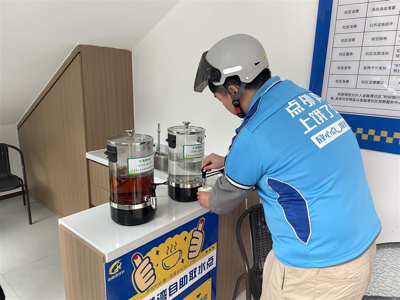 “夏天天热的时候,一天下来,户外工作者来这里取走200多瓶饮用水。能够帮到他们,是社区为新就业群体尽了一份力量。”万梅说。