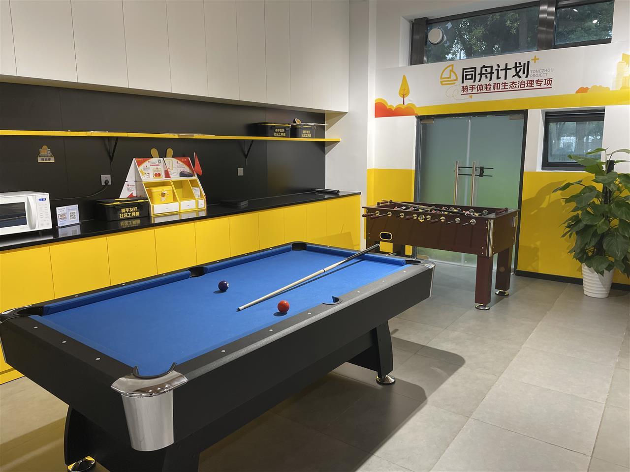 在“骑手之家”,新闻记者看到,这里不仅有休息场所,还有图书、台球、象棋等供骑手免费使用。