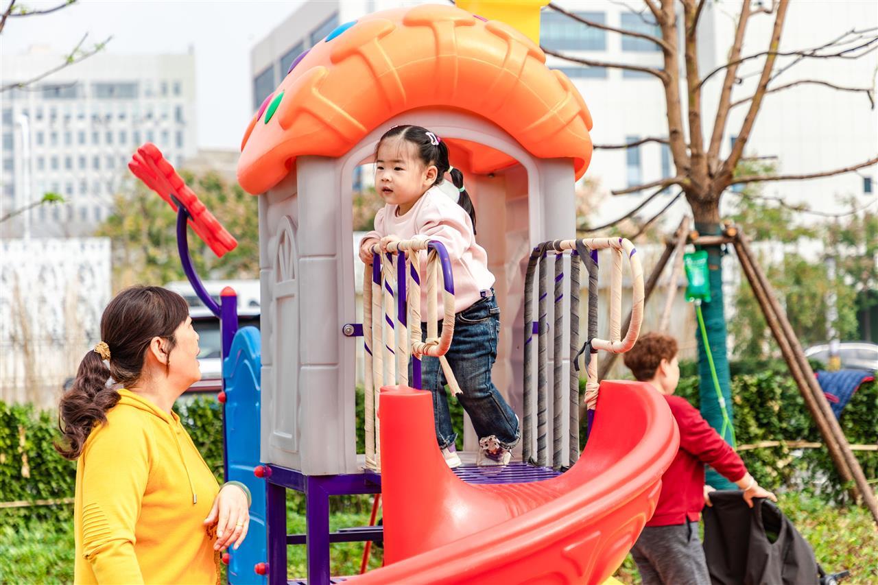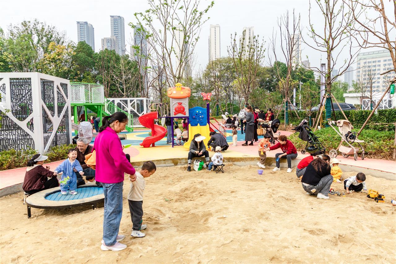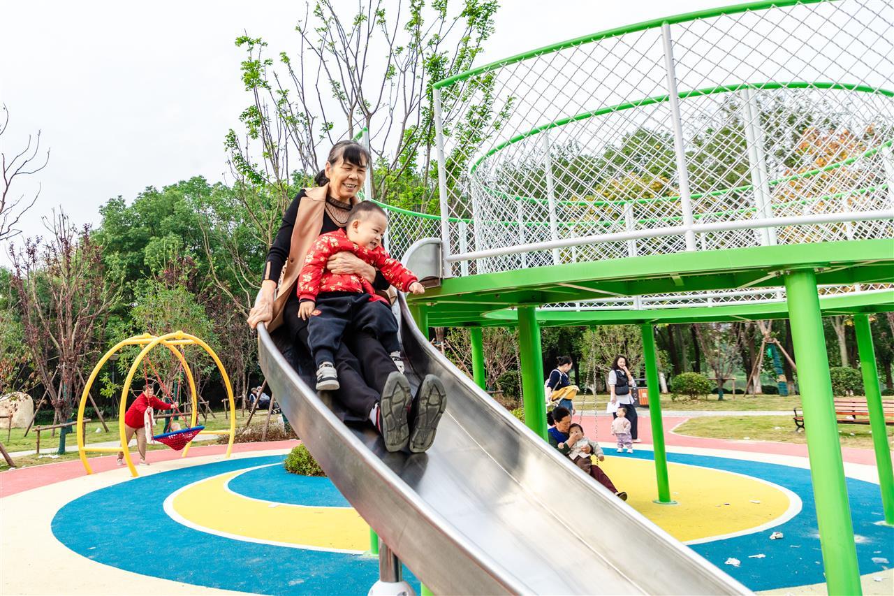 “如今能在家门口遛娃,真的是太方便了。”住汉阳区汇福园的居民余女士带着1岁9个月大的儿子,在儿童乐园里开心地玩起了滑滑梯,“除了睡觉、吃饭,儿子几乎都在这里玩。”