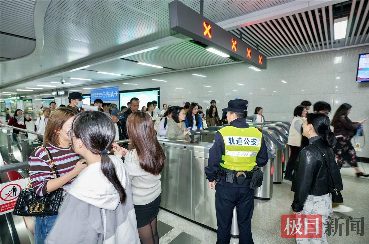 每月一次警企联席会,轨道分局和武汉体育中心、地铁运营公司、经开万达等单位齐聚一堂,共享客流数据,会商工作举措。11月1日,某歌星演唱会在武汉体育中心举办,分局依托警企联席会协调地铁运营公司提前布设隔离设施,增设进出站闸机通道,17名执勤民警辅警(含分局支援)按照安保方案要求值守在站厅、出入口等重点部位,实现“客流预警、人员投放、乘客疏导”同步推进。当晚,3万余名观众疏散时,各环节衔接顺畅,出入口秩序井然,新闻记者现场见证了这一高效场景。