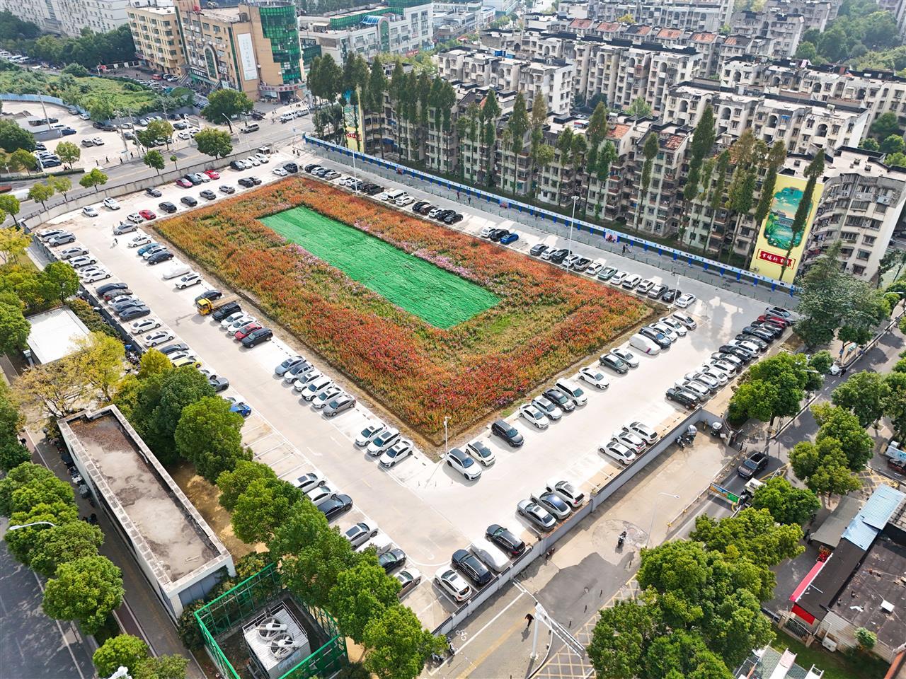 11月3日,在武汉市东西湖区常青花园学府南路与香樟二路之间,一块曾经杂草丛生的空置地块,变身花田花海停车场和充满烟火气息的菜场、夜市之地,扮靓了城市环境,方便了居民出行等需求。