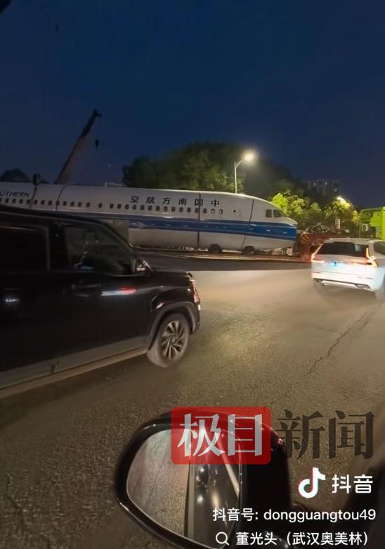 记者搜索发现,有多位市民拍下相关视频,并发布于短视频平台,飞机上写着“中国南方航空”。目击者董先生介绍,事发地位于武汉市黄陂区,11月3日18点左右,他驾车准备外出吃晚饭,看到一辆拖车拉着飞机正在行走,于是拍下了视频。