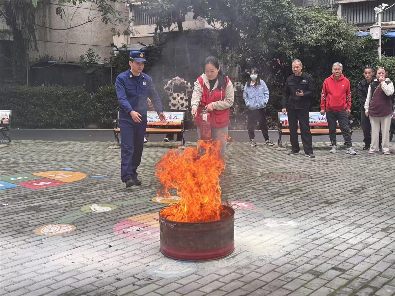 随后,钢花村街道平安办工作人员现场引燃火盆,橙红色火焰升起时,曹教官向大家示范灭火器“提、拔、握、压”四步操作要领,并再三提示关键细节:别站在下风向,避免被烟雾呛到;灭火后一定要检查复燃风险,确保实操环节既学技能、又知原理。