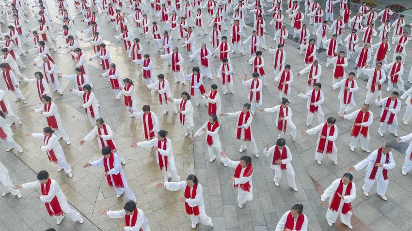 11月4日,2025年武汉市“敬老康乐”传统杨式太极拳汇练展示活动在汉口江滩三阳广场举行。来自全市18个队、站的近千名拳友“以拳为媒、以武会友”共赴太极之约。
