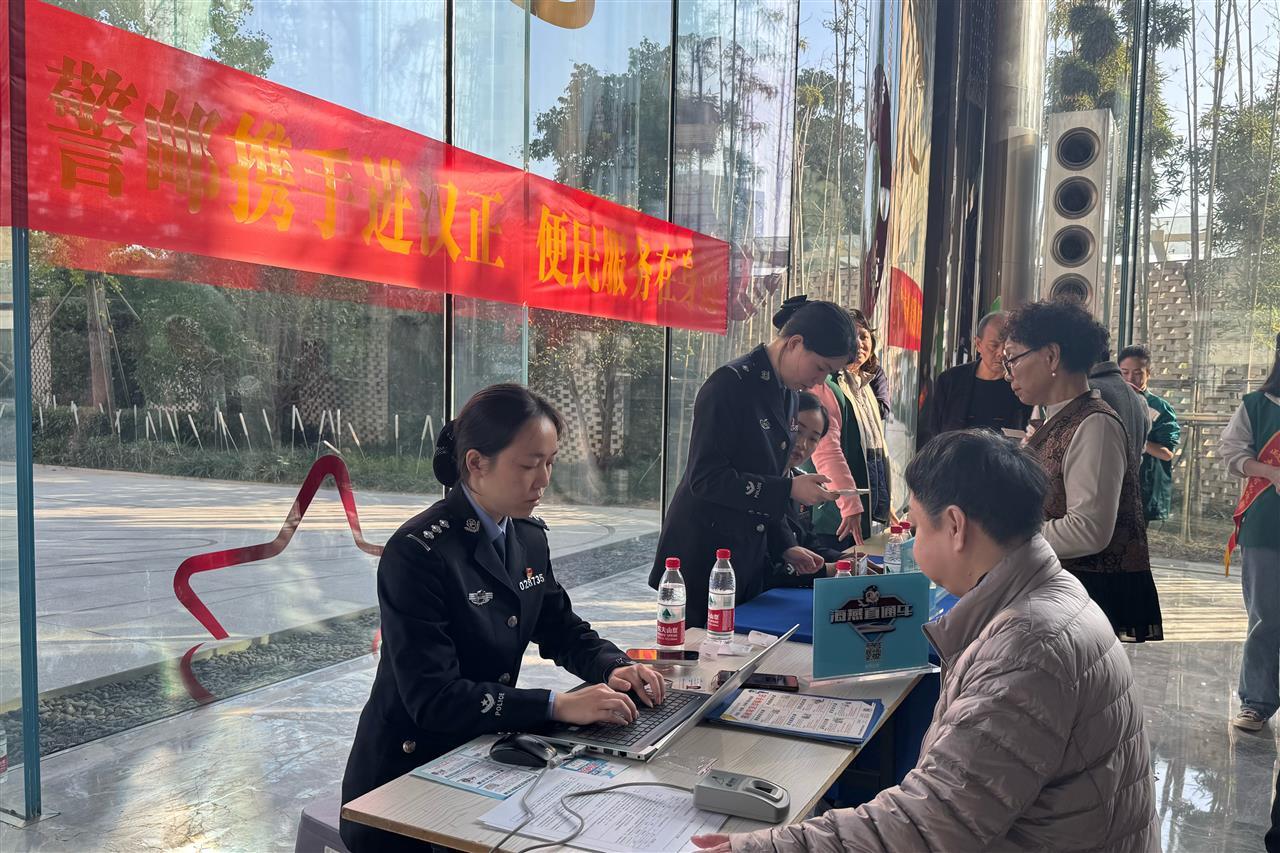 11月4日下午,在武汉市硚口区汉正街复兴外滩一楼大厅内,硚口公安举办的便民服务活动正如火如荼地进行。活动现场设置了身份证办理点和户籍及出入境政策咨询点。