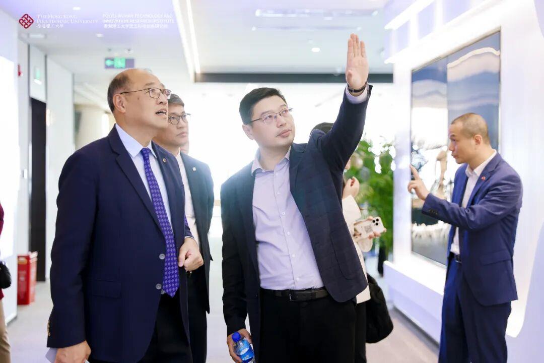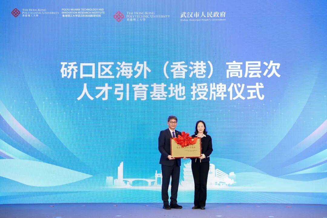 武汉市政府副市长孟晖,香港理工大学校董会主席林大辉,省港澳办副主任祝晓彬,香港理工大学高级副校长赵汝恒,市委组织部副部长姜铁兵,市科创局局长董丹红,署理香港特区政府驻武汉办主任白梅霞,硚口区委书记周耕共同为香港理工大学武汉科技创新研究院揭牌。