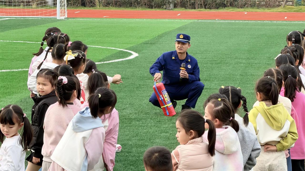 上午8时30分,武汉经开区消防救援大队临江花园消防救援站的消防员率先开讲,聚焦校园消防安全。他们不仅详解火灾疏散逃生路线与注意事项,更现场演示灭火器“提、拔、握、压”操作流程,让师生亲手触摸、实际感知,将抽象的消防知识转化为可操作的技能。