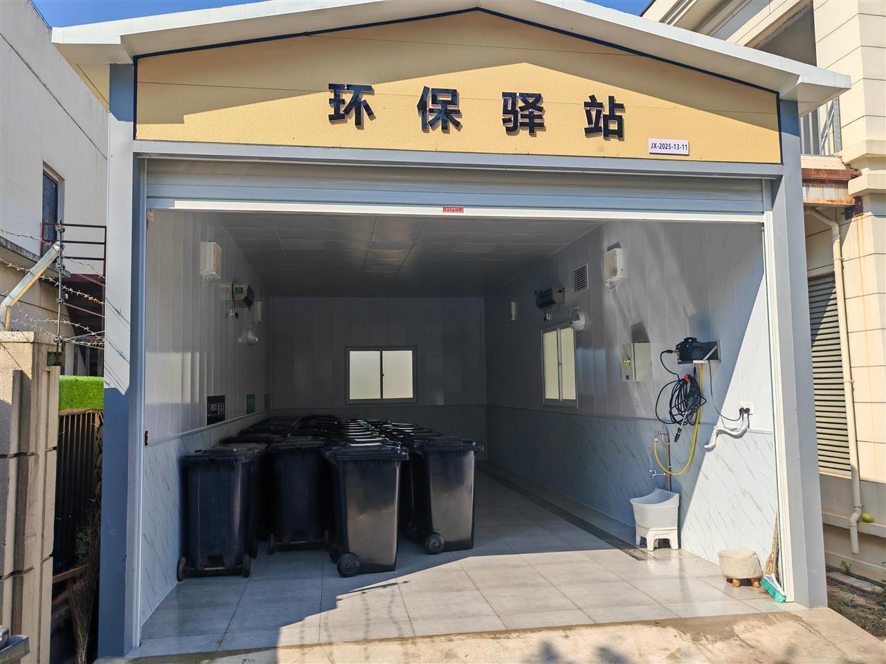 新建的垃圾分类收集屋(即环保驿站)外观采用现代简约风格设计,外墙选用耐候性强的环保材料,配备了密闭遮挡设施、排气扇和灭菌灭蚊设备等,从源头减少异味扩散与蚊虫滋生问题,彻底改变了传统垃圾收集点“脏乱差”的旧貌,实现了颜值与功能双提升。