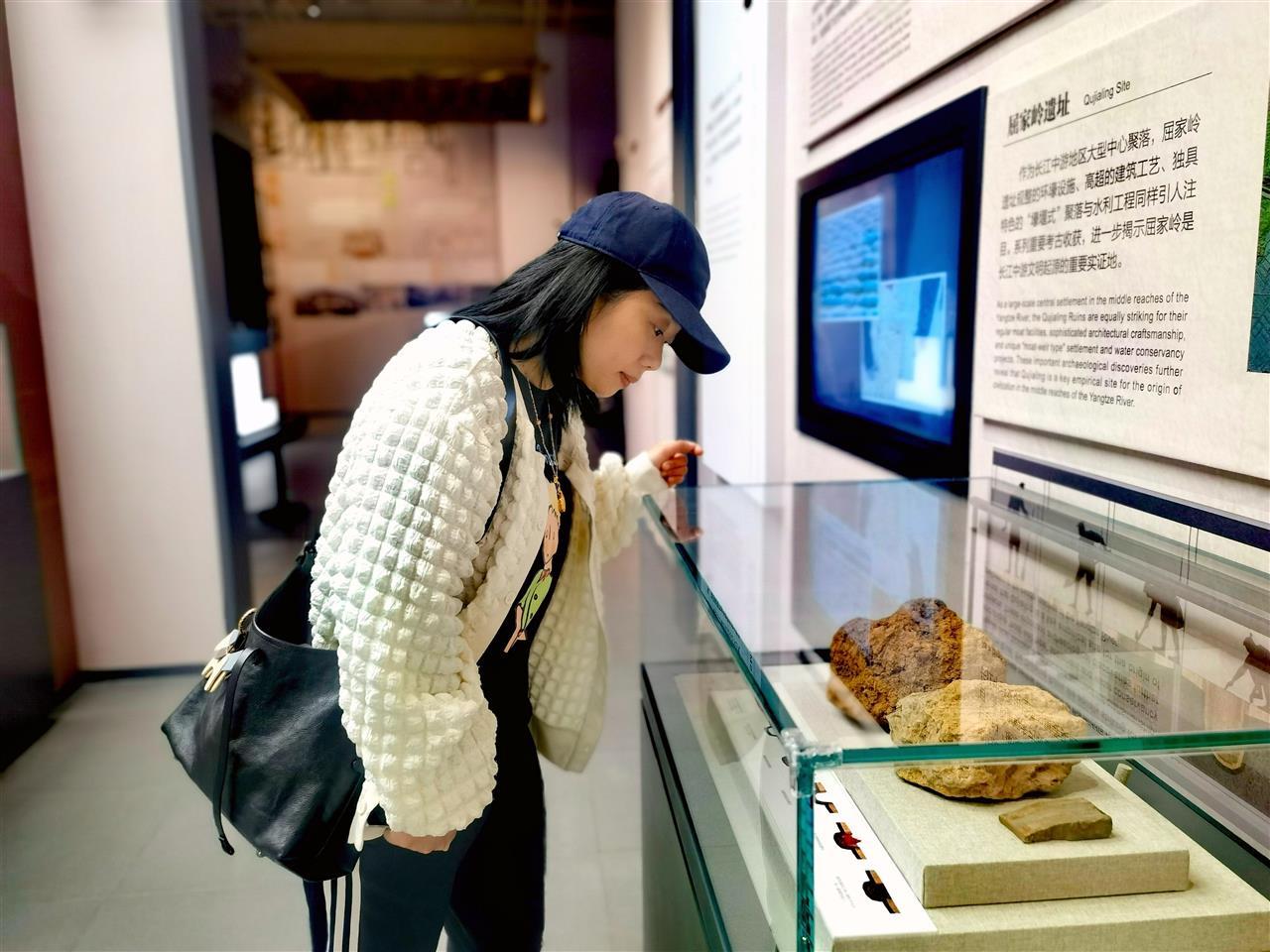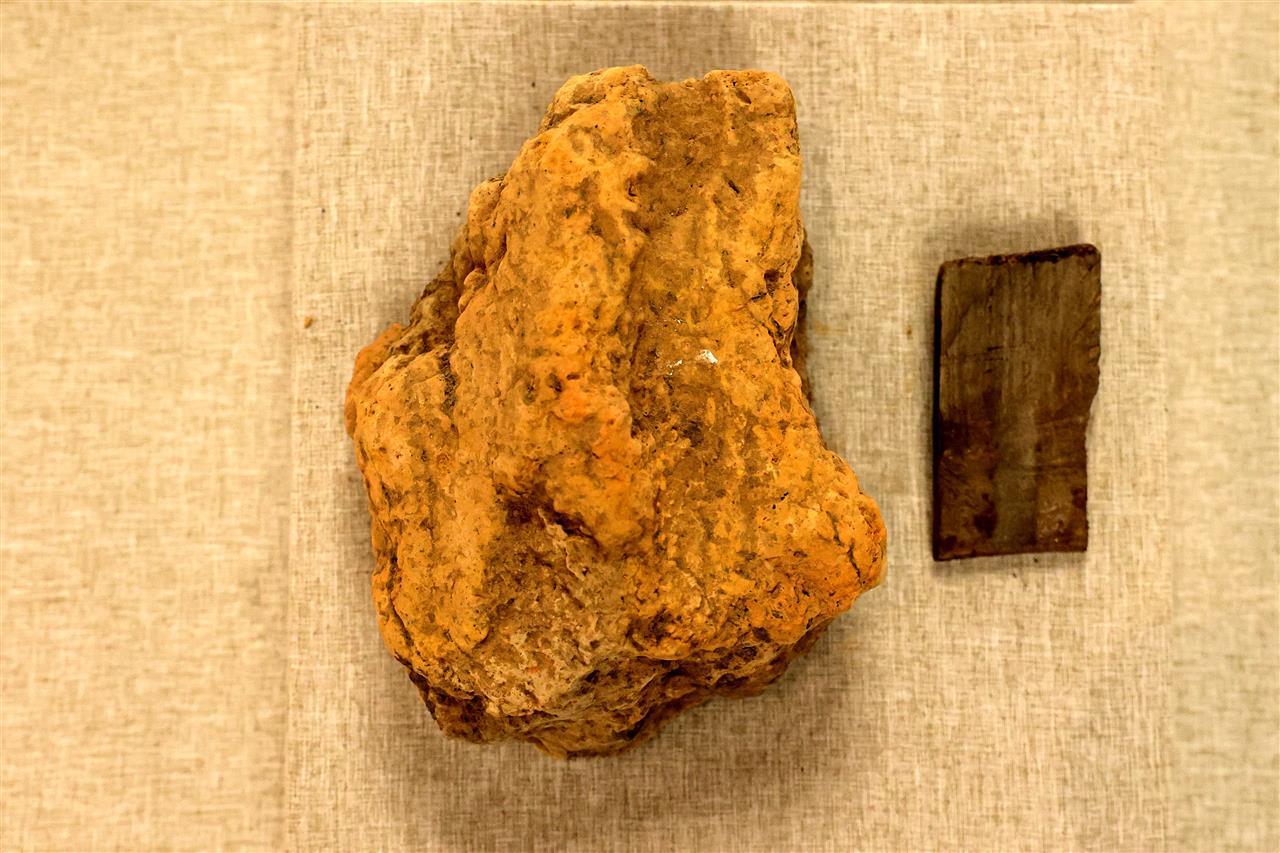 值得一提的是,在展览上新的展品中,首次出现了代表新石器时代先民制造、利用更坚固、实用建筑材料实践的真实文物,即两块其貌不扬的“土疙瘩”,一大一小,体积大的偏黄色,小的一块颜色偏浅,上面还有树木茎干留下的长条形凹痕。据展品前介绍牌显示,它们是出土于湖北省荆门屈家岭遗址中的红烧土残体,诞生时间距今5000年左右。