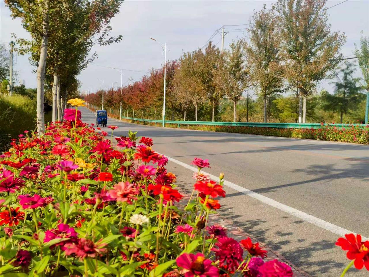 目前,全线已种植香樟、紫薇、红枫、三角枫、红叶石楠等乔木1000余棵,并精心打造占地5500平方米的百日菊花海,不仅有力推动了乡村休闲旅游发展,更铺就了一条农民增收、集体增效、乡村增美的幸福大道。