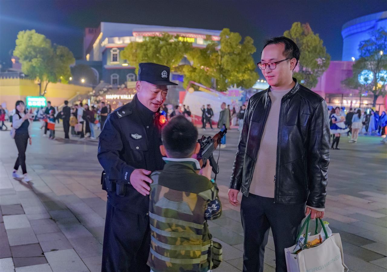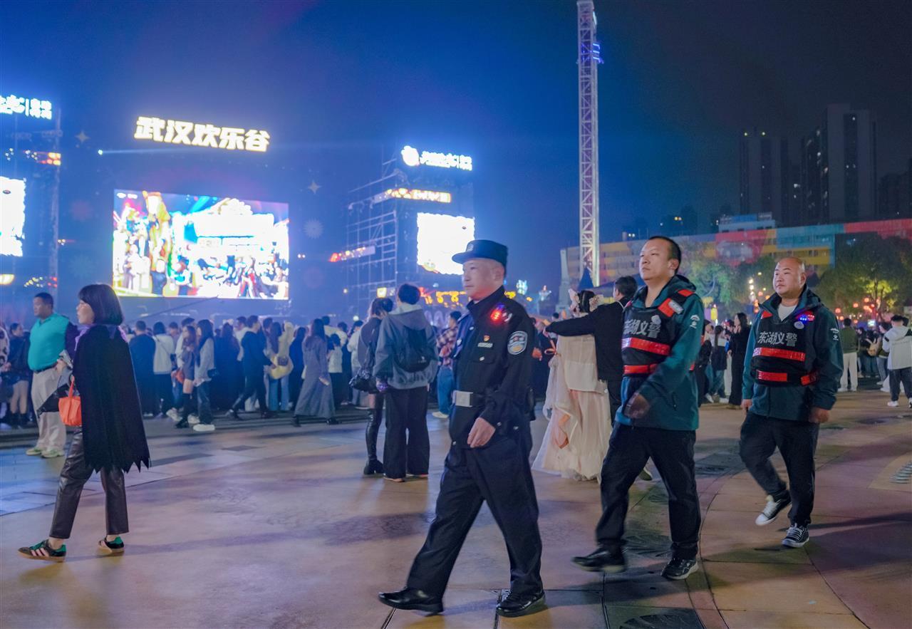 2015年,陈枫从市局机关调至东湖分局,接过了守护欢乐谷的担子。在此之前,他先后从事户政、经侦等工作,多在办公室处理事务。“刚到景区时,面对汹涌的人流真有点茫然。”他回忆,最初遇到大客流时,总觉得警力不够用。后来他主动跟所长沟通,建立“正副班”联动机制,3人分片巡逻,效率大幅提升。如今,遇到大型音乐节这类数万人规模的活动,除了调配所里8名民警上岗、4名辅警配合,还有5名巡特警队员协同,形成严密的安保网络。