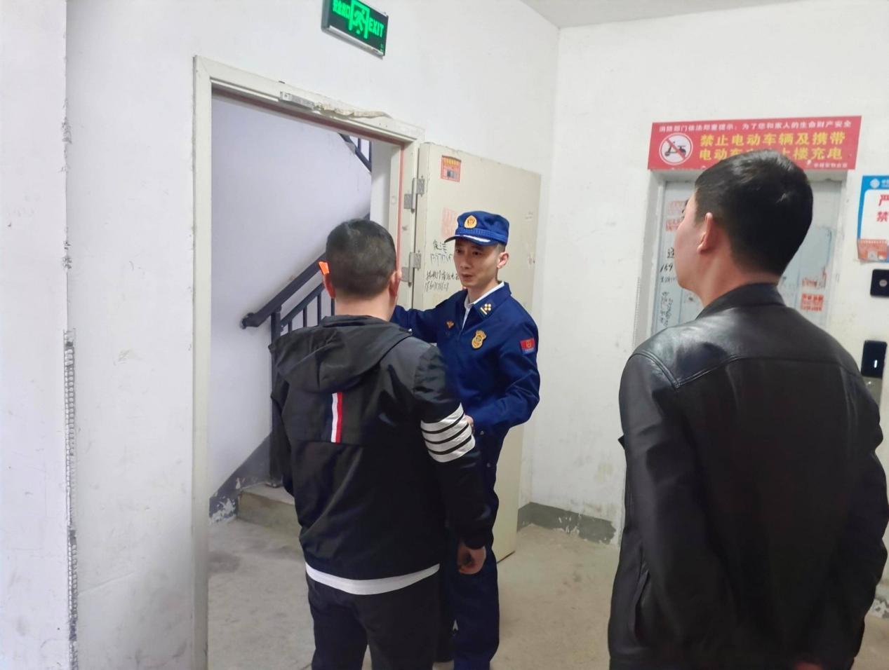 在巡防过程中,巡防组发现一楼道内存在电动自行车入户停放充电的问题,巡防组现场提出明确整改意见,要求物业相关负责人切实履行消防安全管理职责,不仅要及时制止违规行为,更要加强日常宣传引导,全面提升居民规范停放电动自行车的意识。