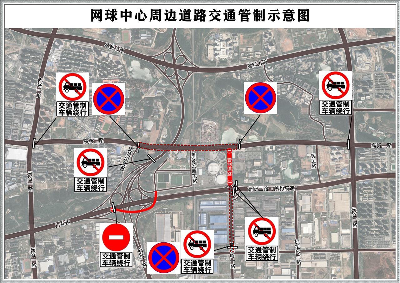 (2)关豹高速佛祖岭一路立交往网球中心匝道采取临时交通管控措施,禁止车辆通行。