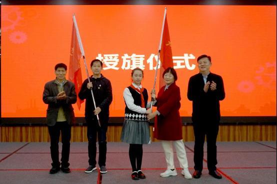 一面队旗,一份使命;一次授旗,一份传承。活动现场还成立了“大厂爷爷”志愿服务队和“大厂娃娃”志愿服务队,硚口区关工委主任国洪河、古田街道党工委书记夏天为两支志愿服务队授旗。未来,古二社区老党员们将携手少先队员,以“红色宣讲员”的身份,走到居民身边,参与志愿服务,传承“飞帆精神”,助力基层治理。