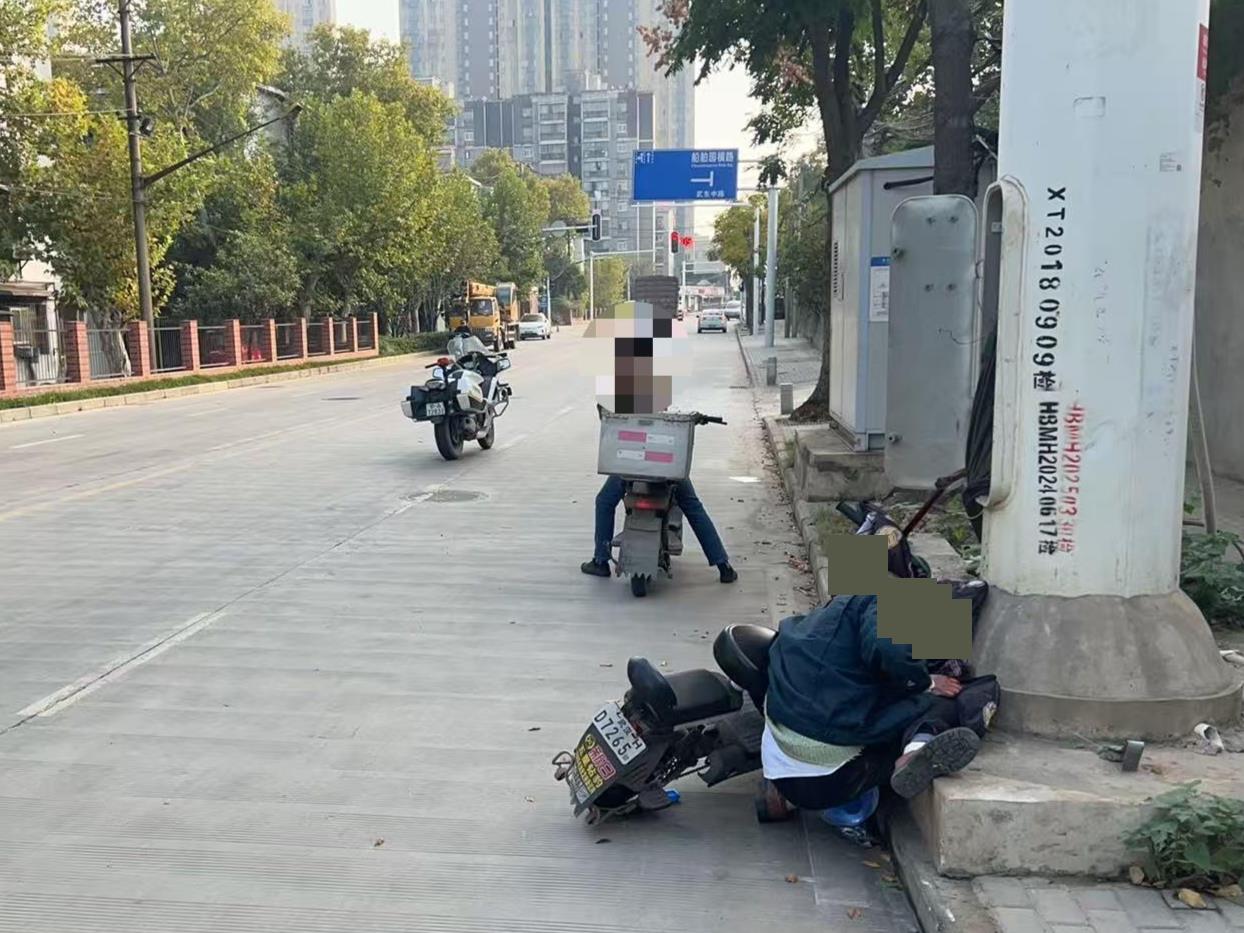 11月5日15时许,武汉市公安局青山区分局交通管理大队十中队汉警快骑队员肖子瑶在武东街航舵社区附近巡逻时,发现非机动车道旁有群众聚集。其中一名老人倒地,面部渗血,电动自行车也倒在一旁。