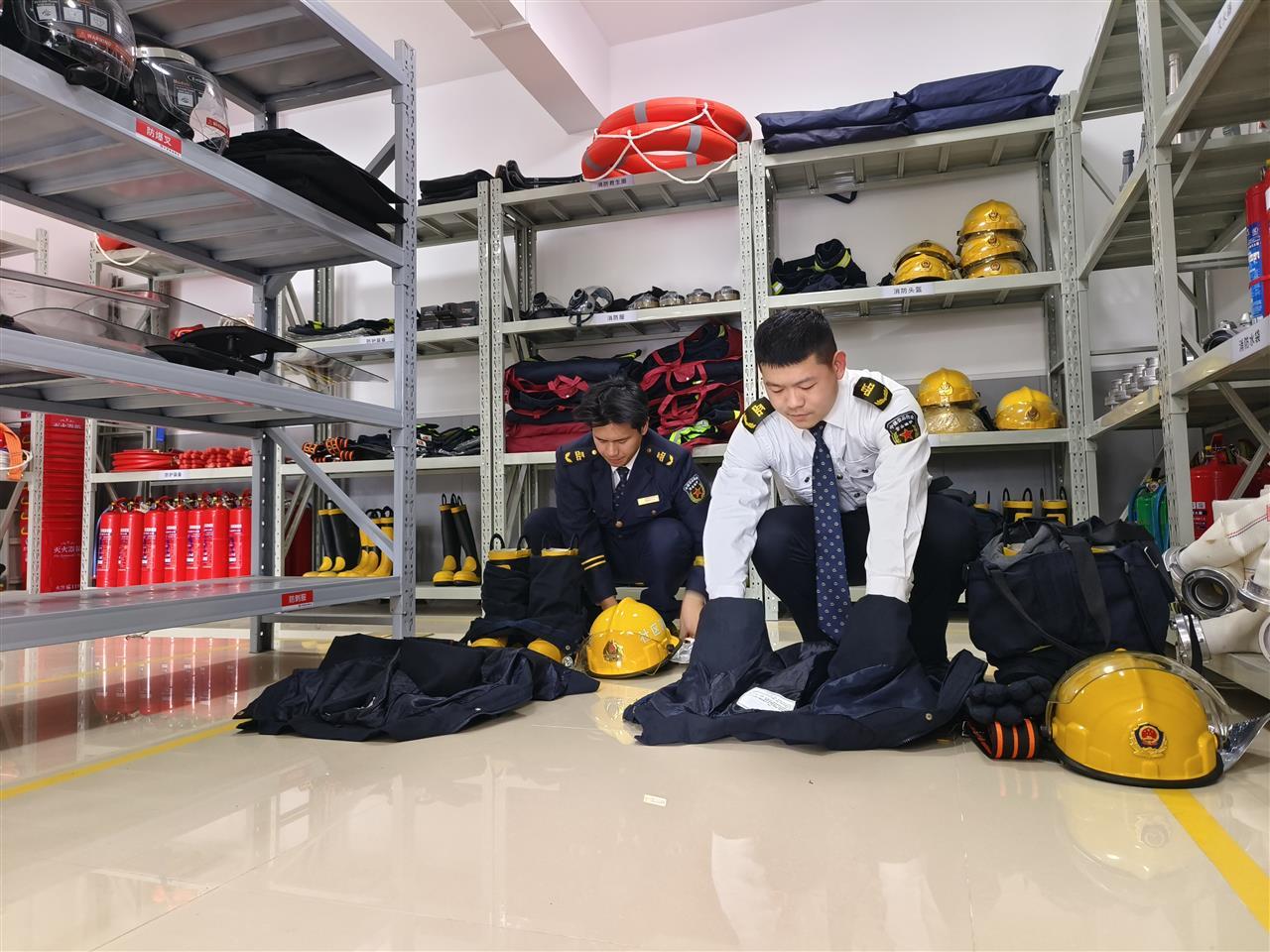 新闻记者随后来到约一公里外的国采光立方小区。这里依托丽岛物业,也建起了小区应急服务站。区应急管理局统一配发了应急救援装备,物业方面也制定了值班交接、应急预案等制度。