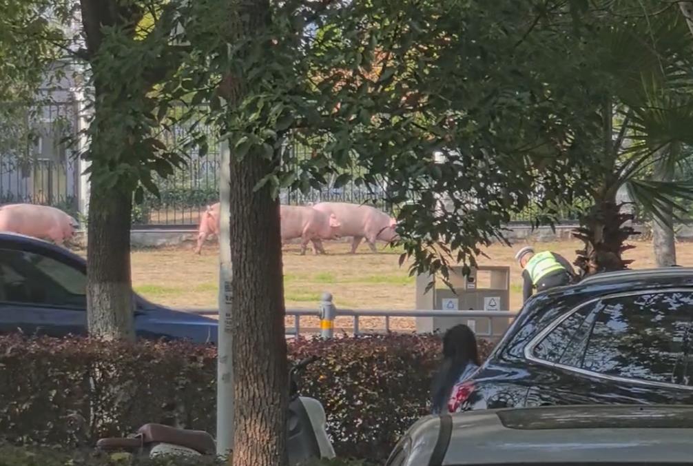 “杨桥湖大道保利西海岸路段有十几头生猪在马路上‘闲逛’,太危险了,请求支援。”11月5日下午2时22分,江夏区公安分局交通管理大队藏龙岛交通警区辅警张潜、金俊巡逻至杨桥湖大道保利西海岸路段时,发现一辆大货车突发抛锚停靠路边,更紧急的是,货车上的十几头生猪竟组团“越狱”!