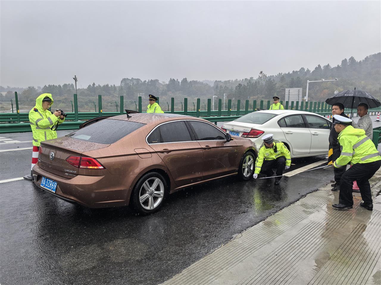 10时32分,交警现场处置组率先抵达。民警冒着浓雾在事故现场来车方向150米处快速布设警示标志与反光锥桶,实施分级管控:封闭应急车道及一条行车道,预留通行车道保障来车有序通行。空中无人机持续循环喊话“前方事故,减速慢行”,地面警力同步展开警戒带设置、交通疏导和证据固定等工作,迅速构建起立体化安全处置区域。