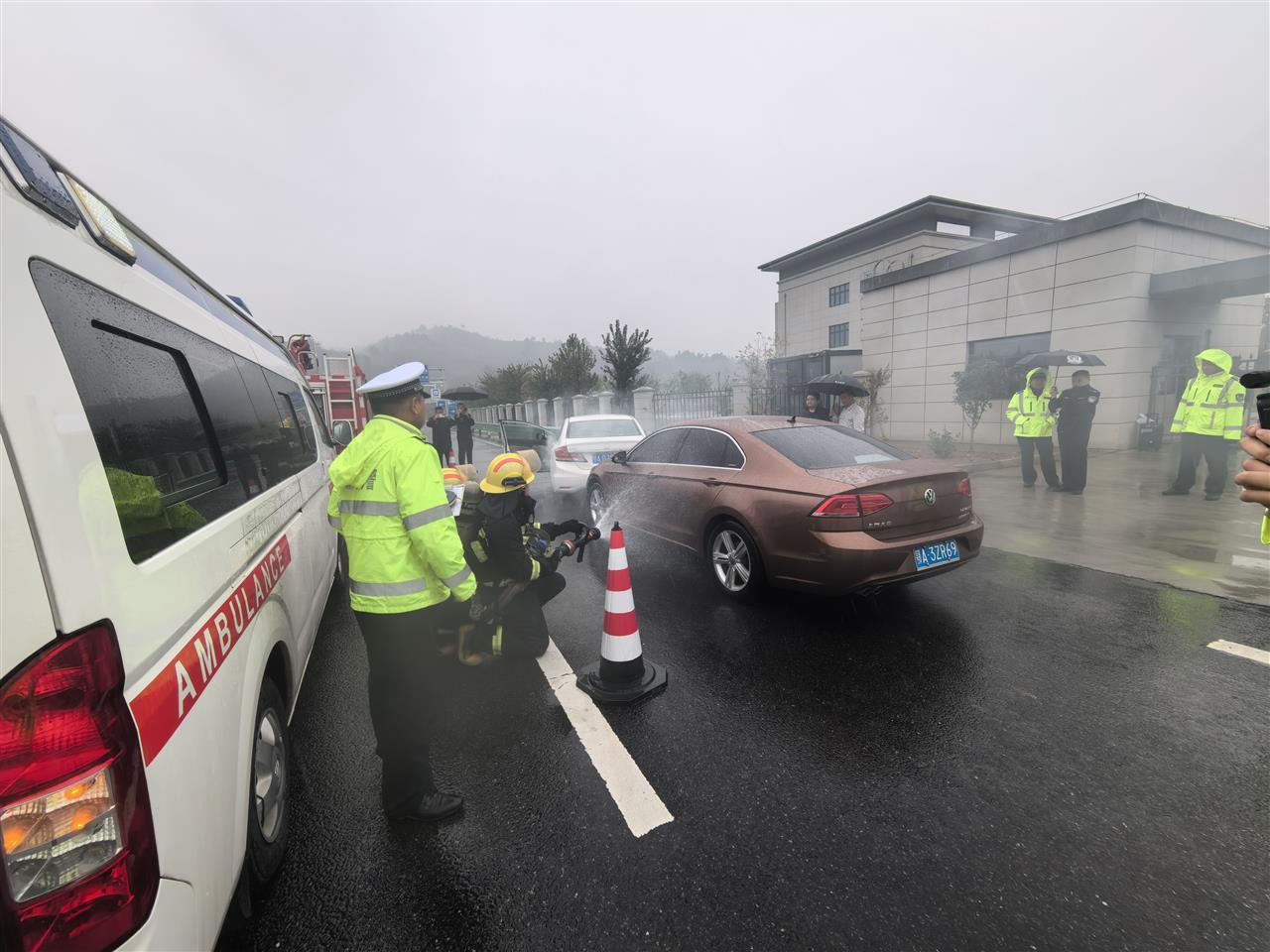 10时35分起,各救援单位依序展开协同处置。清障作业组率先对事故车辆进行加固拖移;消防救援组身着专业防护装备,顶着模拟浓烟实施精准灭火,同步开展破拆搜救;医疗救护组快速完成伤情评估,现场实施止血包扎、骨折固定等急救措施,安全转运“伤员”;路政养护组立即开展路面隐患巡查,彻底清理现场残留物。整个处置过程衔接紧密、高效有序。