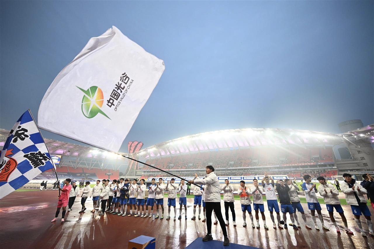 11月9日下午,2025武汉城市足球超级联赛(简称“汉超”)城区组决赛在武汉体育中心开打,提前一场锁定冠军的东湖高新区队(以下简称“光谷队”),仍然不放弃拼搏,以3:2战胜蔡甸区队,以9场全胜战绩强势捧回“汉超”城区组冠军奖杯。