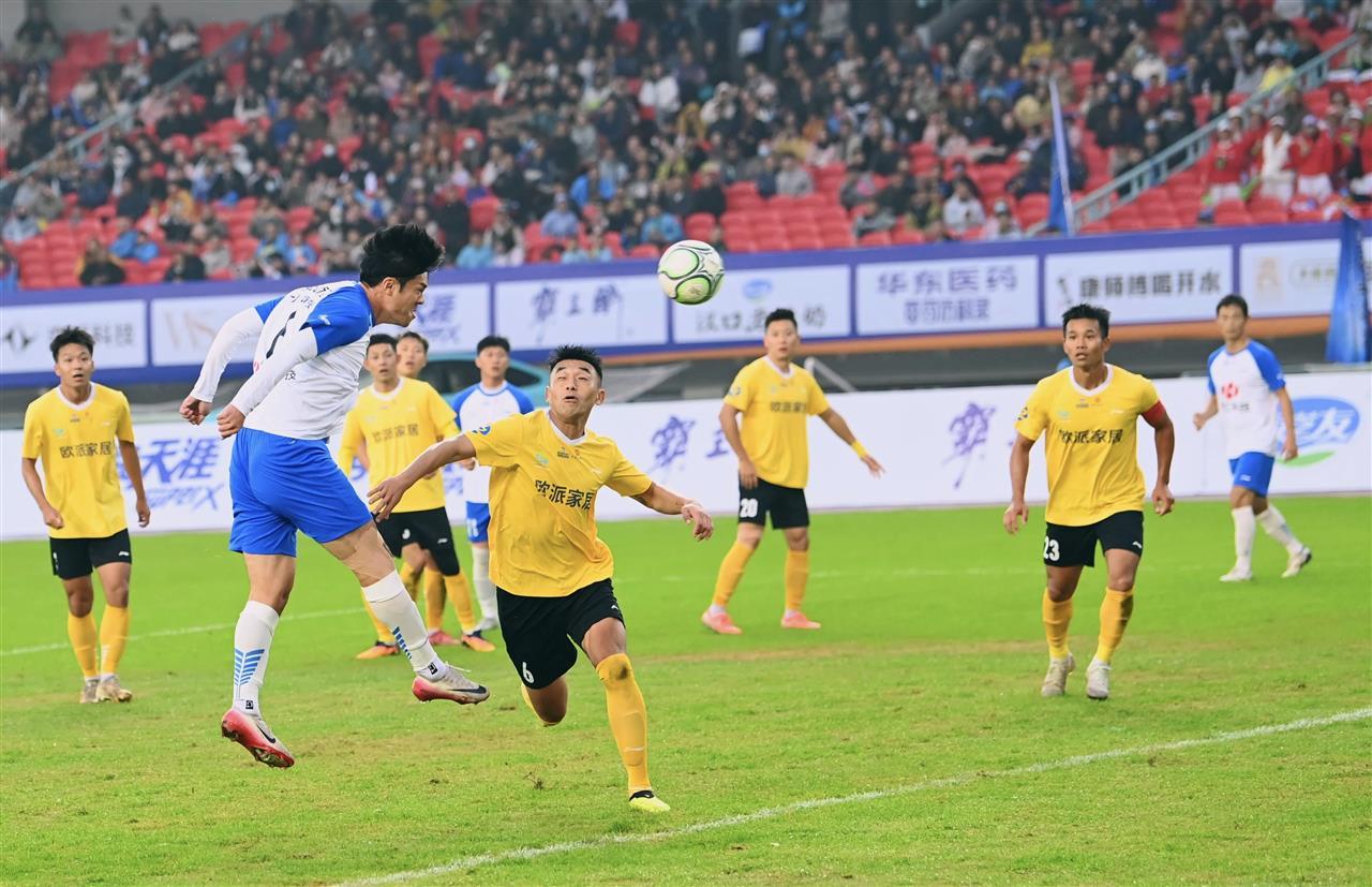 随后,光谷队士气大振,进攻节奏加快,在10分钟内给对方制造多次危险进攻,但蔡甸区队背水一战,双方难解难分。比赛第70分钟,对方再进一球,仅两分钟后,光谷队凭任意球进球再度将比分扳平,第80分钟,光谷队2号球员邓渊泽上演单刀破门,并最终以3:2锁定胜局。