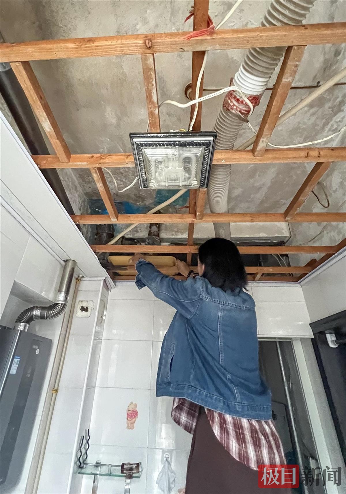 郭女士介绍,去年十月份,发现厨房天花板渗水,为了方便观察漏水和接水倒水,她只好把整个厨房吊顶的扣板全部拆掉。经物业等专业师傅查看分析,判定为经过楼上住户厨房的公共排水管可能出现裂缝而漏水。她多次联系楼上房主,希望能挖开其厨房包住排水管的墙体更换新管,但对方以更换水管会损坏其厨房装修为由未达成一致意见。一年来,她每天只好搭梯用水盆或塑料盒接漏,水接满了再倒掉重新接,日子过得颇为烦心。