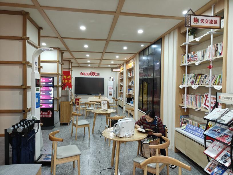 走进这个330平方米的升级版驿站,变化随处可见。这里不仅有基础的微波炉、冰箱、沙发等,更添置了共享淋浴间、听书机、直饮机、空调等。曾经的后厅,如今被打造成一个多功能“潮玩空间”——午休时间,拉上窗帘,这里是配备了舒适躺椅的静谧午睡室;工作之余,这里又变身为热闹的“社交俱乐部”,大家可以一起看电视、玩桌游,彻底放松身心。