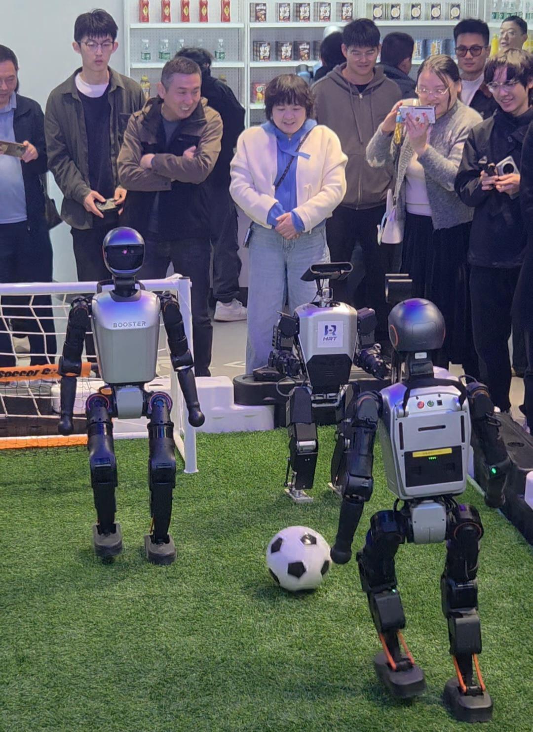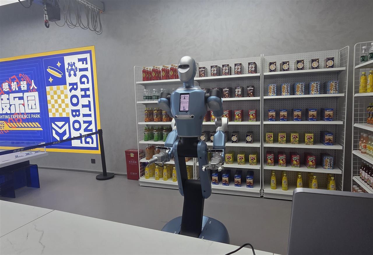 光谷人形机器人7S店内充满未来感。入口处的“产品矩阵区”陈列着湖北自研人形机器人家族——格蓝若“劳动者”专注工业巡检,手智创新“远游”具备康养陪护功能,而光谷东智“光子”更以世界人形机器人运动会金牌得主的身份成为打卡热点。配件区犹如“机器人零部件图书馆”,芯片、灵巧手等核心部件一览无余;服务区提供年度巡检套餐,确保机器人“健康长寿”;体验区则是全场焦点,机甲对战与足球机器人赛事吸引观众层层围观。此外,“AI优品货柜”展示光谷人工智能硬件创新,培训区则可以学习编程,企业工程师切磋技术。每个分区不仅功能明晰,更通过互动设计让参观者亲身感受科技如何服务生活。作为湖北人形机器人全链条产业的展示窗口,7S店承载着更大的使命。它不仅展示产品,更连接研发、生产与用户。通过信息反馈系统,用户的每一次操作、每一条建议,都会实时传回后台,为技术改进提供方向。