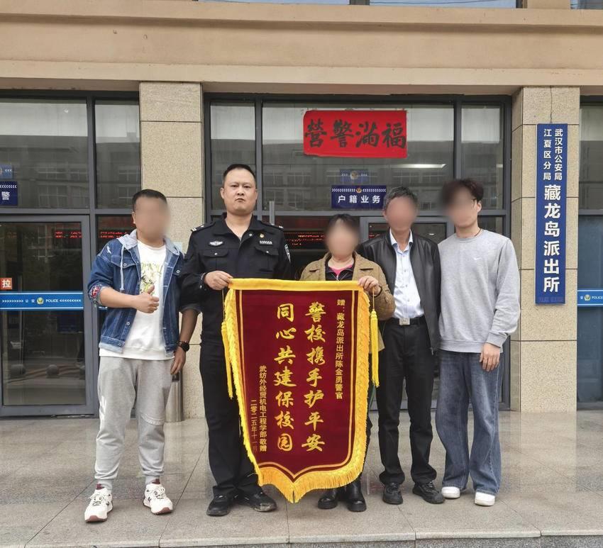 “陈警官,这面锦旗您一定得收下。您可是给咱们学校的反诈工作筑起了一道实实在在的‘防护墙’。”11月10日,武汉纺织大学外经贸学院范书记紧握江夏区公安分局藏龙岛派出所民警陈金勇的手致谢。随行在侧的保卫处处长与校反诈工作人员一起将一面鲜红的锦旗送到陈金勇手中。锦旗上,“警校携手护平安 同心共建保校园”两行金字熠熠生辉,这面锦旗的背后,是一场守护“学生钱包”的校园反诈攻坚战。