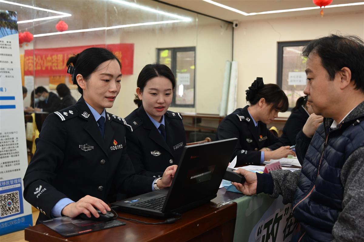 政务窗口民警针对居民提出的“老年人身份证补办流程”“出国旅游签证办理材料”等问题逐一解答。