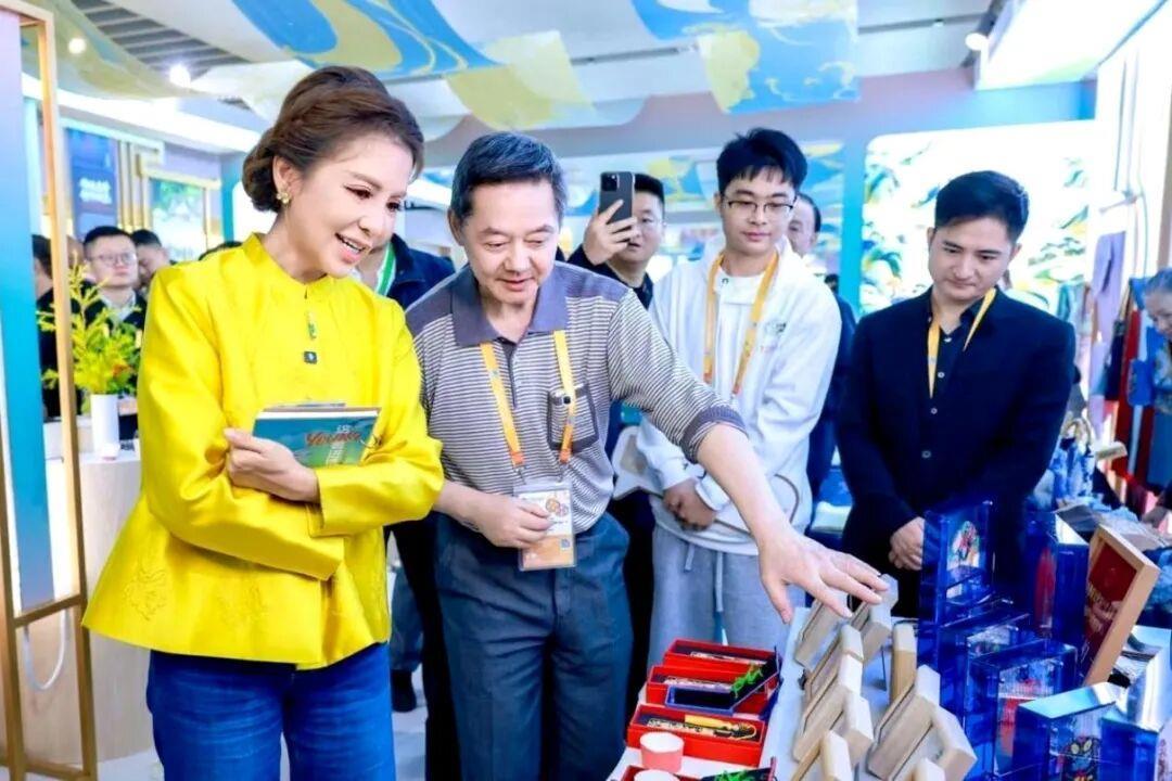 螺钿镶嵌技艺传承人程新华带来的作品造型简约大气,螺钿纹样沿袭传统工笔画技法,线条细腻精致,在不同光线下流光溢彩,完美兼具了精妙的艺术质感与朴实的文化韵味,展现了极高的审美与收藏价值,引得观众纷纷驻足欣赏。