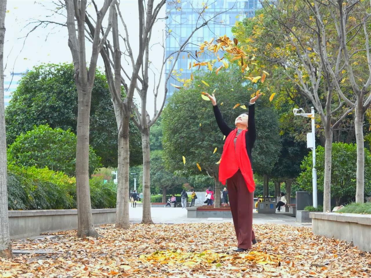 “看着满地金黄色的落叶,踩在上面沙沙作响,从视觉到听觉都让人感受到了秋日的魅力。”市民张女士十分开心地和洪山广场工作人员分享她的喜悦。当天,张女士带着她的模特团队到洪山广场上游玩,发现落叶层层堆叠没有清扫,金黄落叶铺就了天然T台,她们踩着沙沙作响的叶毯,迈着优雅T步(见下图),与秋日美景相映成趣。