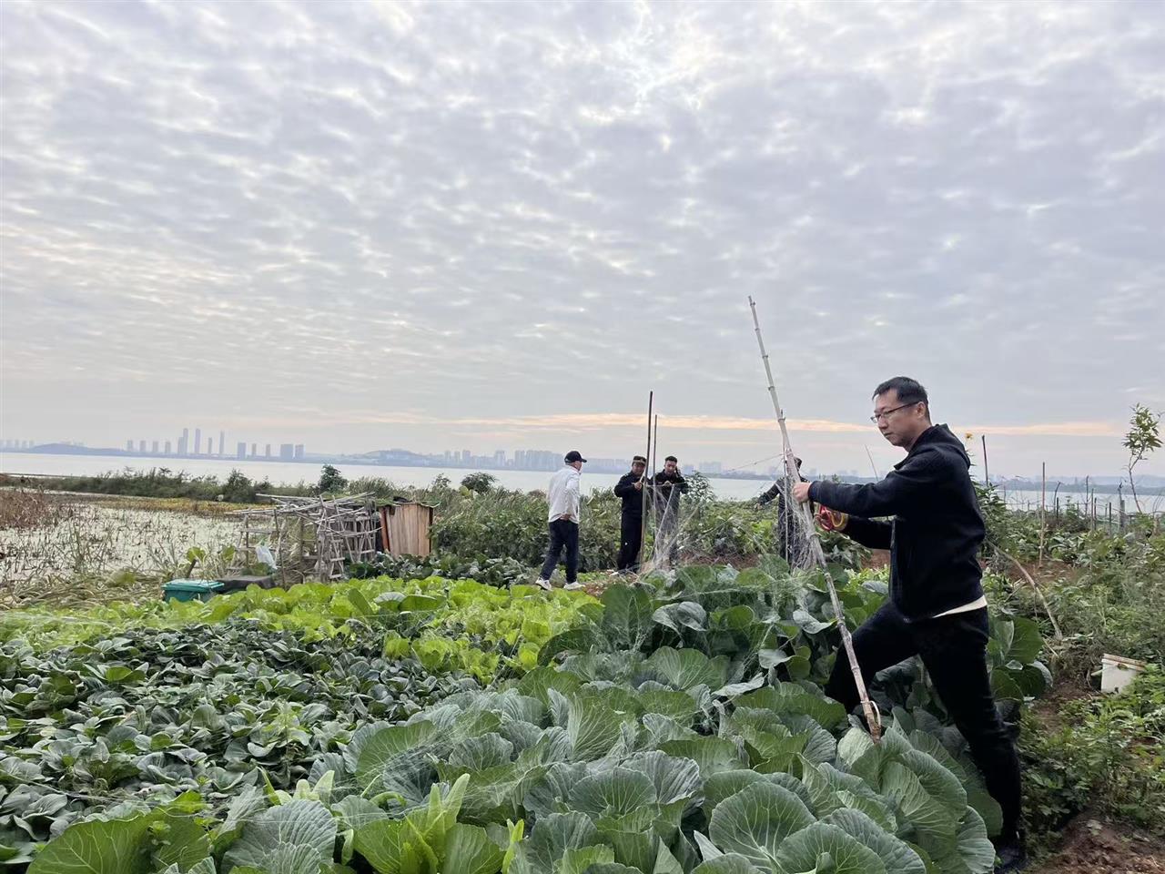 菜农在湖边菜地设置渔网,防止鸟儿啄食,不料却给鸟儿带来生命危险。11月12日,武汉市洪山区城市管理执法局质量监督管理站联合洪山区公安分局开展“清网”行动,消除野生鸟类飞行、觅食过程中的“隐形陷阱”,为鸟类营造安全的活动空间。