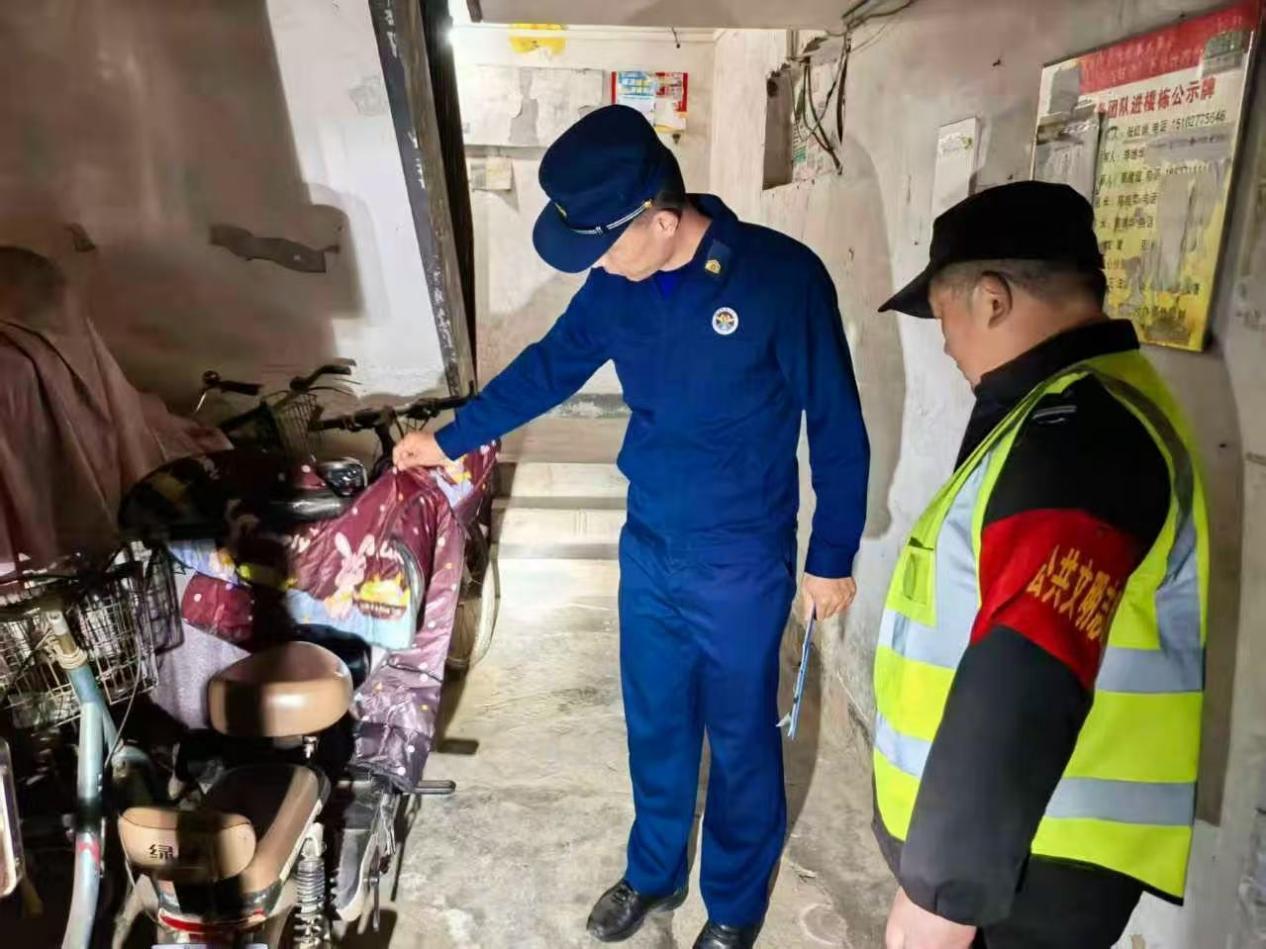 “电动自行车不能停放在楼道,更不能在楼道内飞线充电,请立即联系车主,移车至电动自行车车棚。”在武昌区,巡防组采取“逐栋摸排、逐层检查”模式,重点对电动自行车是否存在违规停充问题、疏散通道是否畅通、消防车道是否划线、基础消防设施是否完好有效、室外消火栓是否供水正常等情况进行检查。同时,巡防组督促物业切实履行消防安全管理职责,加强日常巡查管控,针对薄弱环节及时整改,规范电动自行车停放与充电区域。