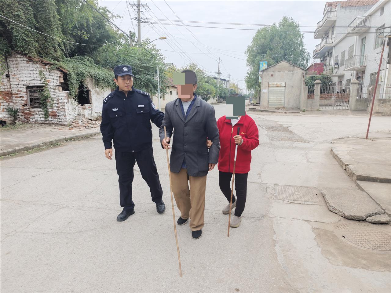 民警结合衣着特征,通过警务系统与社区网格员联动核实身份,确认二人为附近簰洲村居民。考虑到天色已晚、车流密集且施工路段路况复杂,民警分工协作,一人搀扶引导、一人探查路况避让车辆,全程步行将夫妇俩安全护送回家。