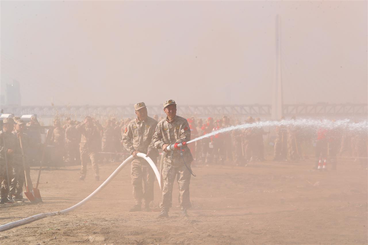 浓烟翻涌,火龙疾窜。11月13日上午,在武汉市洪山区天兴洲码头空地,一场贴近实战的森林防灭火应急救援演练紧张打响。洪山区人武部组织170余名基干民兵,围绕应急响应、协同扑救、器材运用等关键环节展开全流程演练,全面检验民兵队伍在复杂火情下的应急处置与协同作战能力。