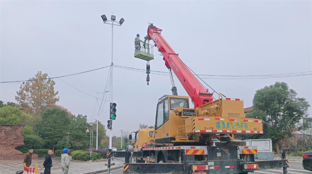 前不久,蔡店街道综合执法中心工作人员通过实地走访、收集群众意见等方式,排查辖区照明薄弱区域。经排查发现,广场路口作为群众日常休闲、通行的重要节点,原有路灯使用年限较长,光线昏暗;垃圾转运站周边因照明不足,给环卫工人夜间作业带来不便等。针对上述问题,蔡店街综合执法中心迅速行动,联合街城建办安排工作人员赶赴现场勘查,全力保障改造工作高效推进。在姚姚线、清凉大道与腊梅街交叉路口,新装1套15米高架射灯,并为红土广场路口及垃圾转运站更换了4盏射灯,让街巷角落重焕明亮光彩。