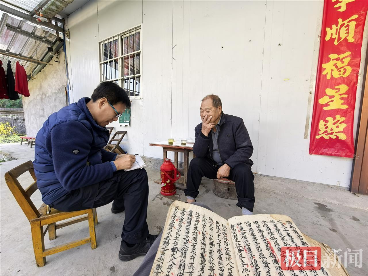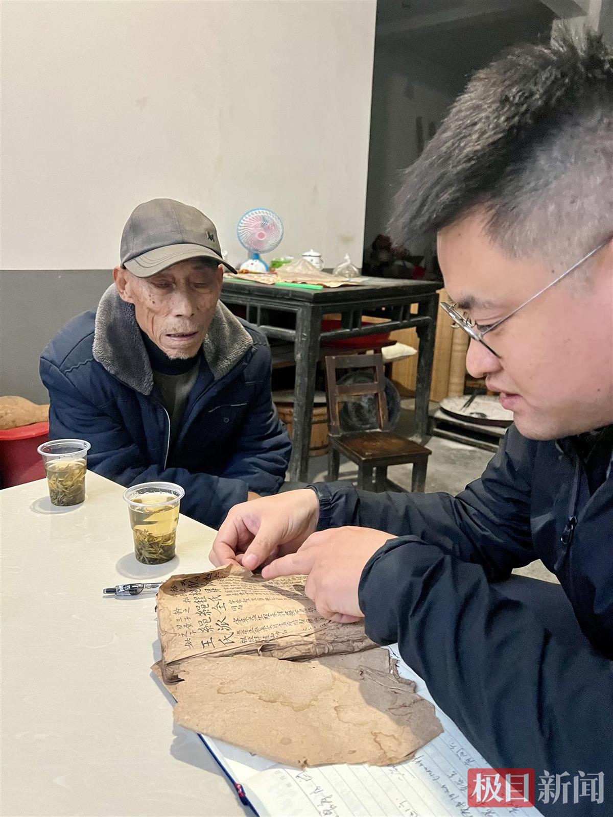 12日傍晚,新闻记者驱车从武汉赶到当年转运粮草的重要中转地白河县,根据郑用威提供的一条线索,在茅坪镇茅坪社区工作人员带领下,找到了82岁的郑树元,他找出了家中珍藏上百年的族谱。