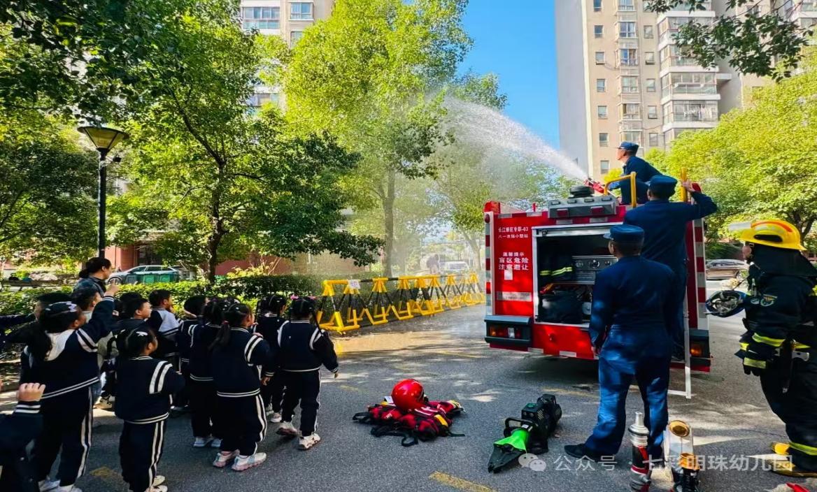 小朋友们最喜欢的莫过于目睹消防车大显神威。活动高潮出现在消防队员们启动作业那一刻,水带中一股强劲水柱远远喷向高空,在阳光下形成漂亮的水链,在太阳的照射下出现了一道小小彩虹。大家近距离感受消防车澎湃的力量与水压时,人群中不断爆发出“哇!”的惊叹声。