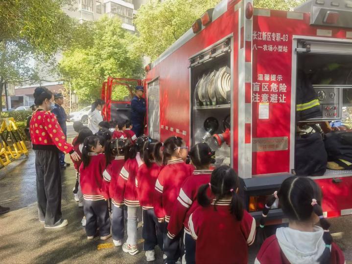 当来到体验环节时,孩子们迫不及待地一个个轮流登上了消防车驾驶室。坐在消防驾驶员的位置,摸到方向盘爬上座椅,挨个看清仪表盘上的按钮含义……从高大挺拔的“消防车视角”环顾眼前的操场和小伙伴们,兴奋与骄傲填满了每一个天真的脸庞。一个小男孩大声向消防员说:“我长大后要像你一样,保护所有人!”