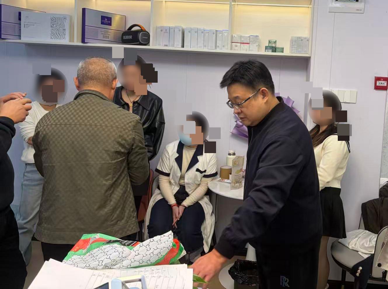 接警后,车站派出所副所长龚坤带领民警吴晨、王新平立即赶赴现场。“我们是正规美容院。”店长李某把营业执照、卫生许可证等文件一一摊开在民警面前,坚称这是经济纠纷,跟公安无关,甚至把5本客户档案拍在桌上,指着客户的签名、手印,言之凿凿地说:“白纸黑色,你情我愿,不存在强迫交易。”