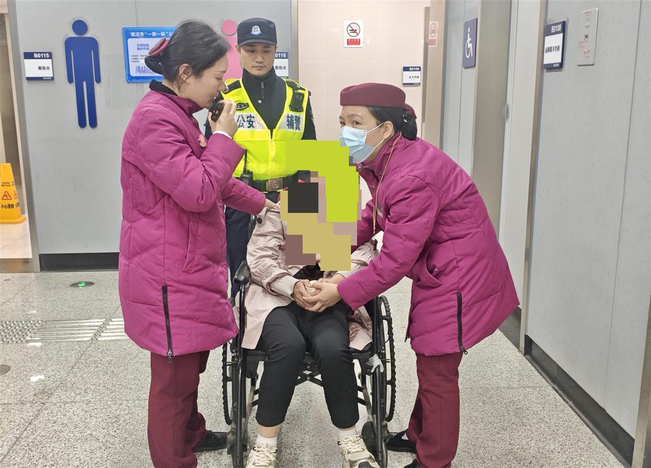 当天17时许,武汉市公安局轨道交通管理分局辅警罗鼎在地铁16号线马影河站执勤时接到值班站长余茜求助,称保洁员李爱荣在日常清扫时,发现女卫生间外堆放着大量行李,而室内长时间无动静。两人来到卫生间打开隔间门查看,发现一名女乘客已失去意识晕倒在地,请求警察到场救助。