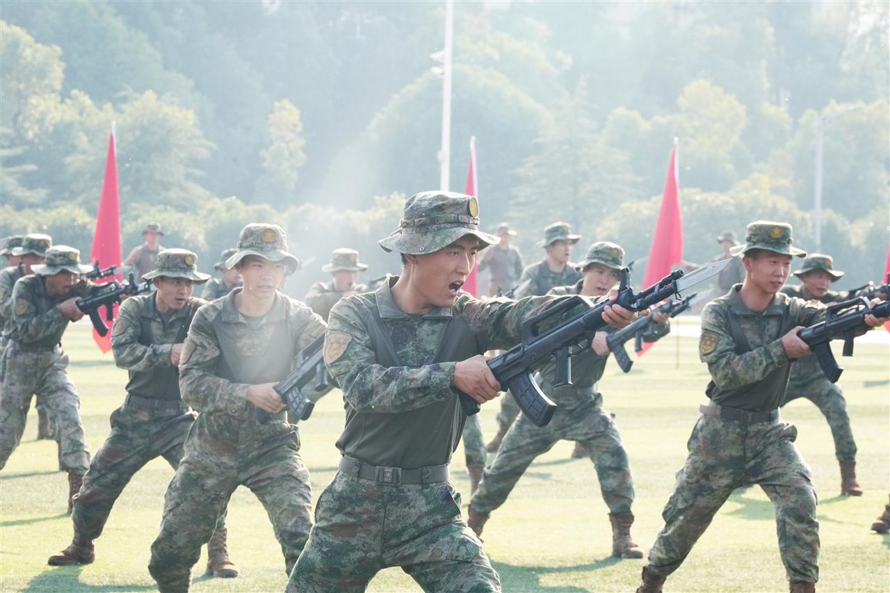下午3时,国歌奏响,活动正式拉开帷幕。紧接着,官兵们以一套《武动军营》武术表演瞬间点燃全场。长棍呼啸,如猛虎下山;钢刀闪亮,似银蛇狂舞。最令观众屏息凝神的,是那套杀气凛冽的刺杀操——官兵们突刺、搏击、闪转等,每一招都充满力量,引得观众直呼:“这才是真正的‘力量担当’!”