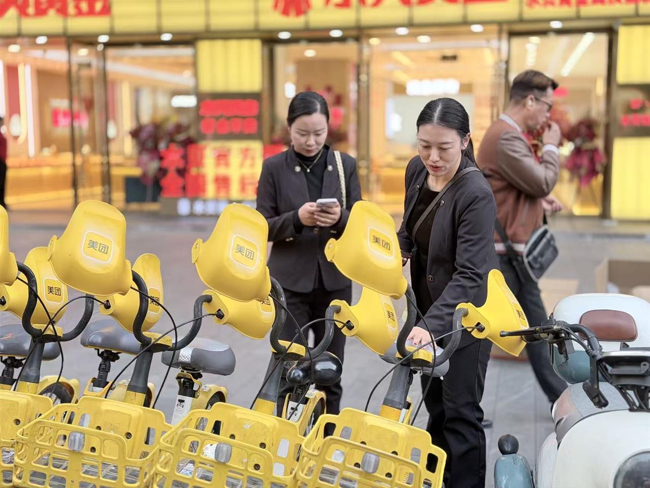 “这黄色的装置看上去与众不同,还蛮好看。”一位扫码准备骑行的女士说。