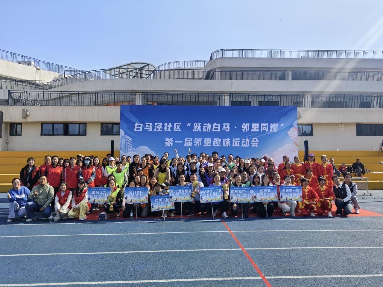 11月15日上午,武汉市东西湖区金银湖街白马泾社区在环湖路小学举办了首届“跃动白马·邻里同燃”邻里趣味运动会。本次活动共吸引由社区居民、辖区企业、商户及共建单位组成的8支代表队参与。