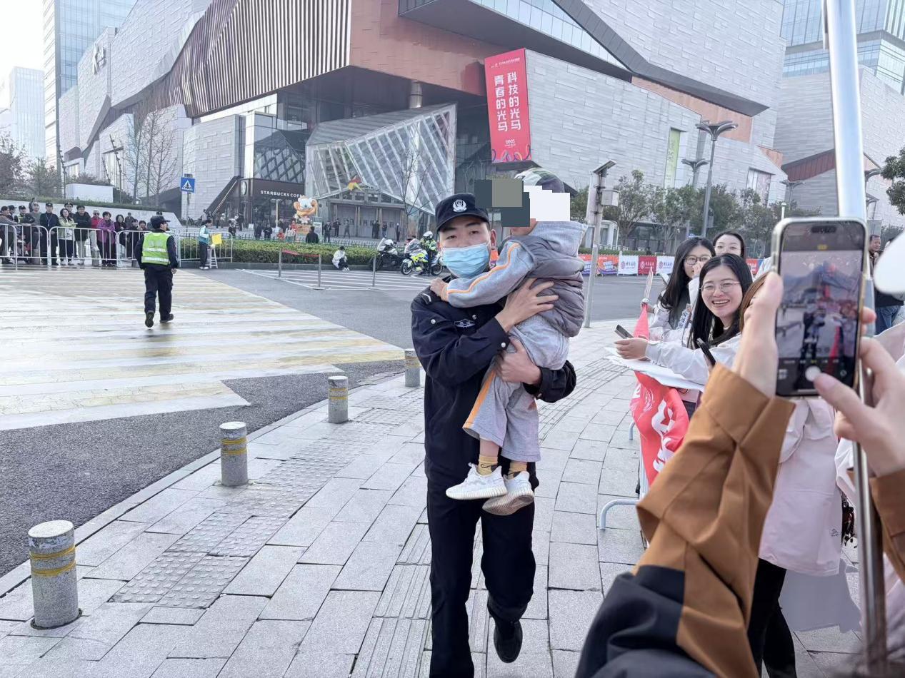 上午9时许,九峰街派出所光马安保值勤民警在高新大道豹溪路路口接到一名母亲的求助。因光谷半马赛事道路暂时管控,她与孩子被迫分隔在马路两旁,人多眼杂,存在走失风险。执勤辅警黄明、汪健迅速行动,在不影响赛事通畅的情况下找到孩子,安全交还到母亲手中。