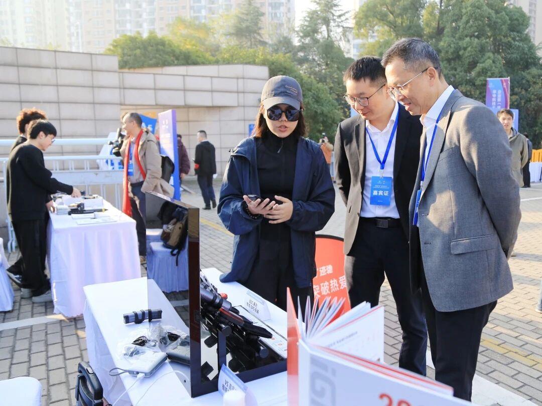 当天,在大会主会场外,洪山区还组织了一场科技成果展示。影石创新科技股份有限公司、武汉齐物科技有限公司、湖北时代星光科技有限公司等多家辖区高新技术企业集中亮相,带来了各自的前沿研究成果,并与参会嘉宾进行了深入的交流。