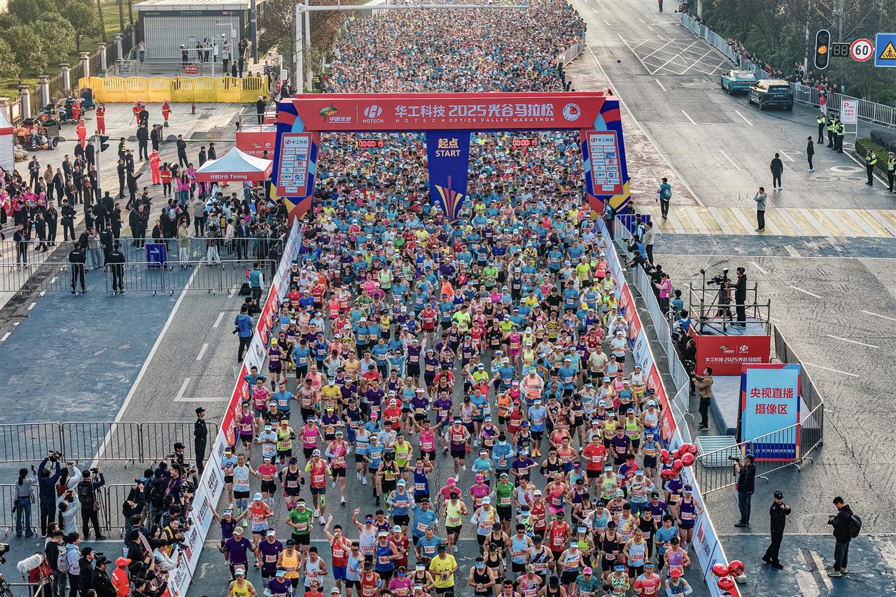 来自武汉市紫阳湖跑团的选手刘涛说:“我已参加了三次光马。每年的赛事组织都井然有序,指示牌清晰、通道分流合理,保障人员也很专业,在光谷跑步让人感到舒适。”